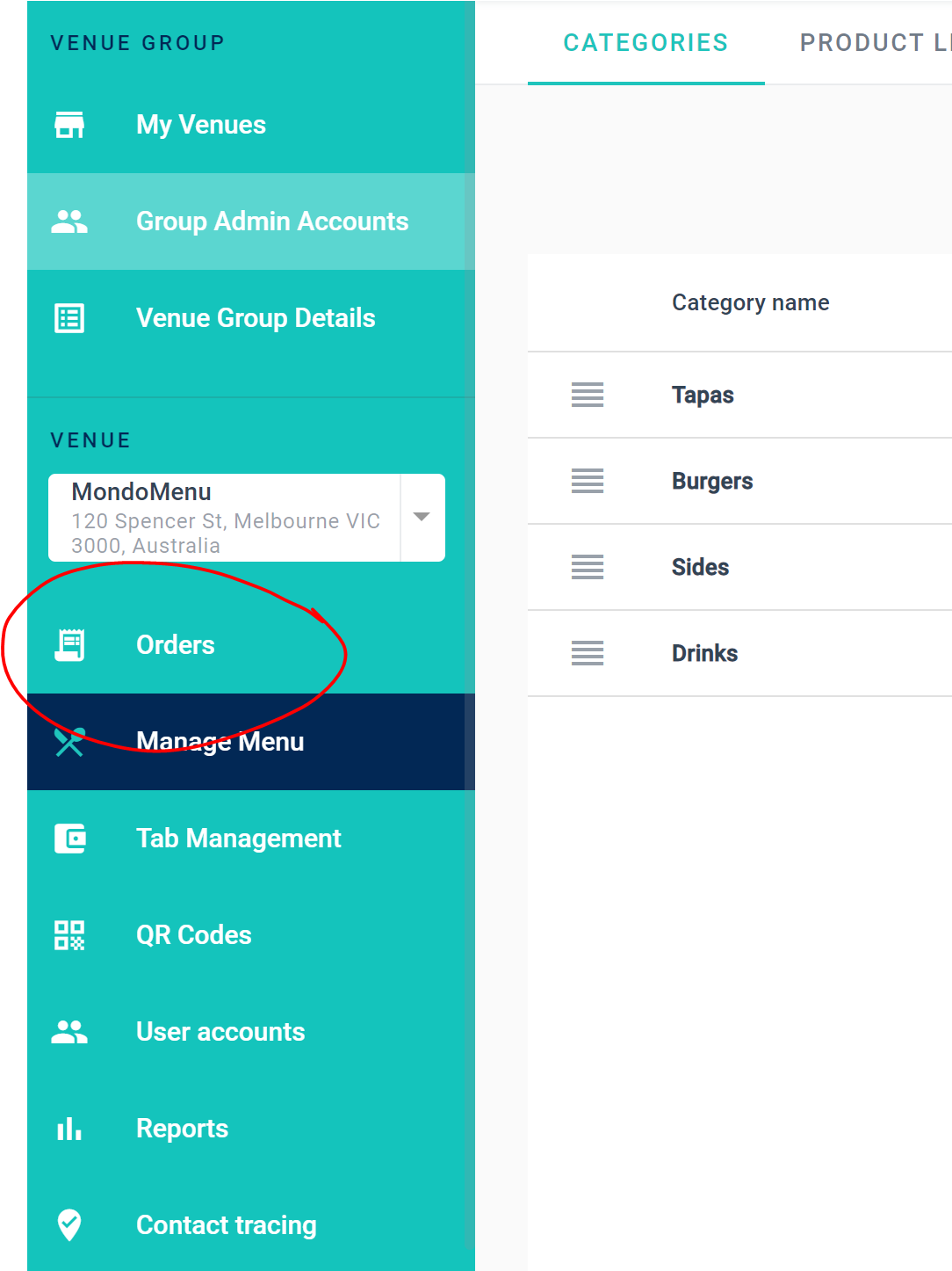 1. To enable this feature, simply go to Orders in the left side menu of your portal:
