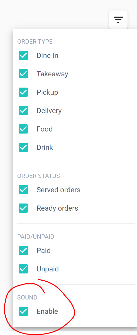 You can now switch on sound notifications so that you hear a sound when new orders come into your live order screen or when no action has been taken on at least one new order sitting in your live order screen for more than 120 seconds.
