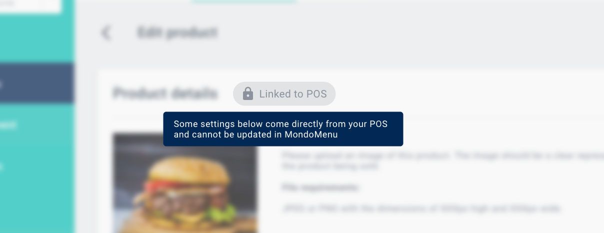 If you see a “Linked to POS” tag next to a setting or product field you want to update, this means that the information comes from your POS and you will need to contact your system administrator to have it updated.