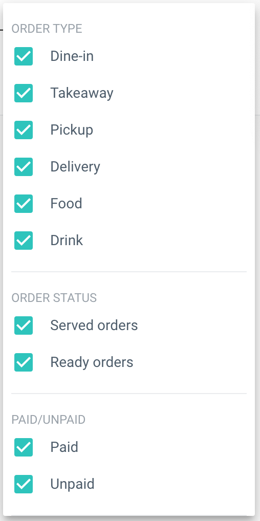 Clicking on this symbol will allow you to customise what you see in the Orders screen and filter for certain categories.