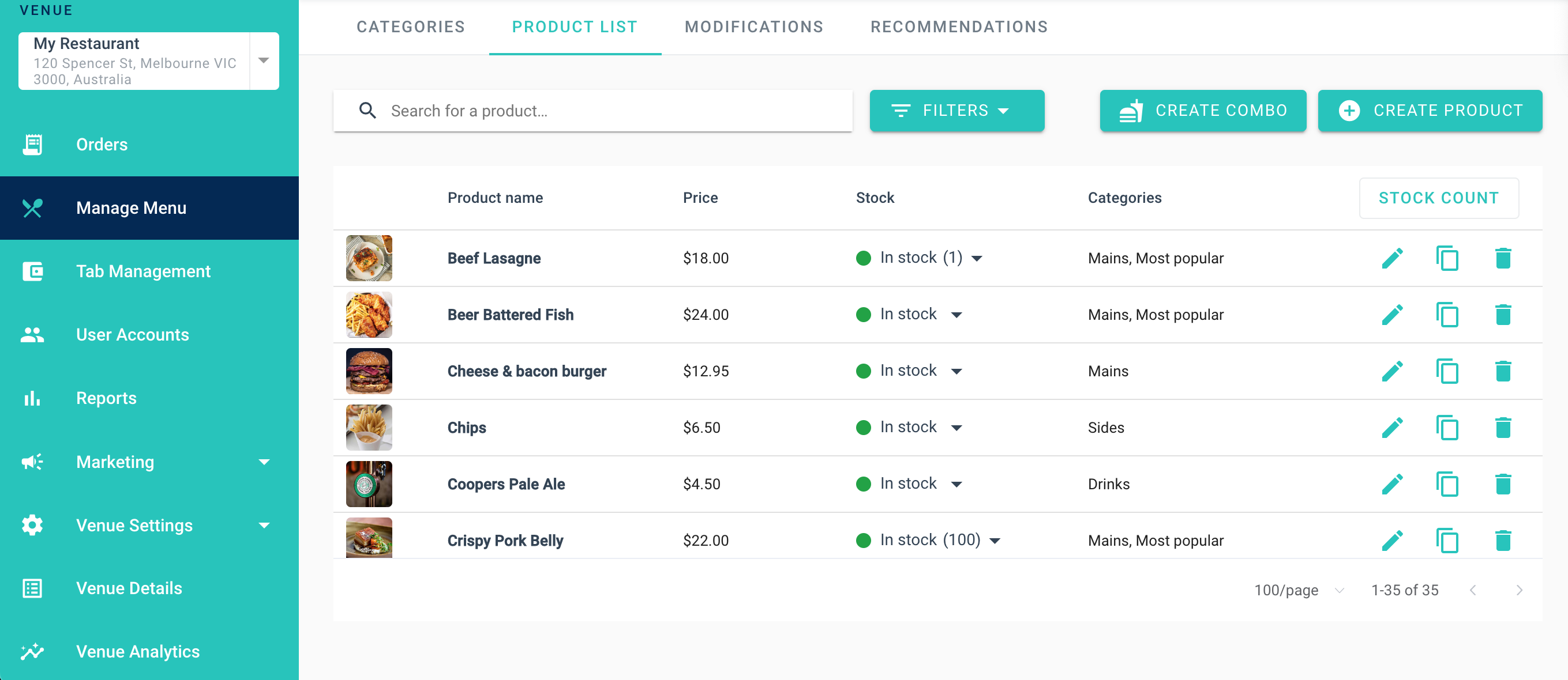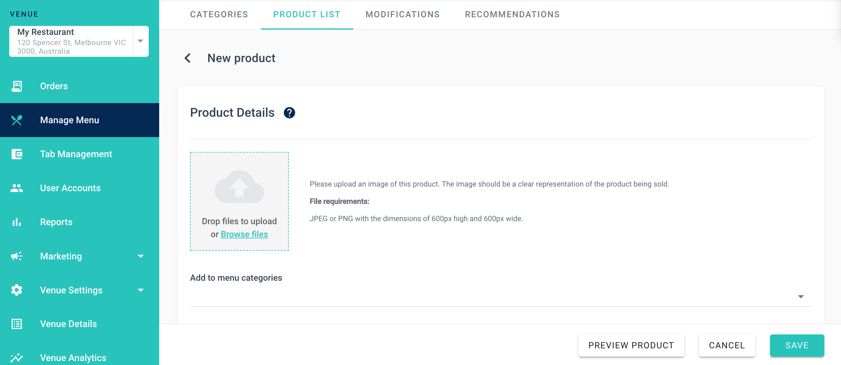 Products must be added to a category for them to appear on your menu. You might want a product to only appear as a recommendation or as part of a combo product. For more information, see our article on Recommendations or Combo products.