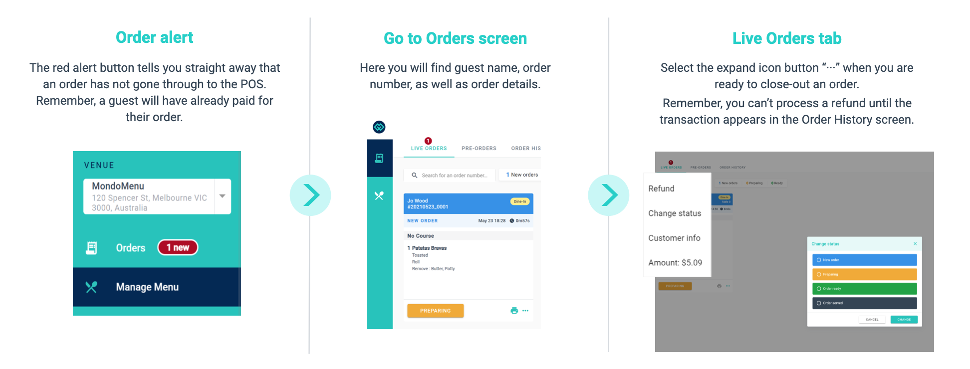Remember, MondoMenu collects payment for the order upfront. When a customer receives a message that the order has not been successful, it means that the customer has actually made an order and paid for it on MondoMenu, but that the order has not successfully been posted through to the POS.