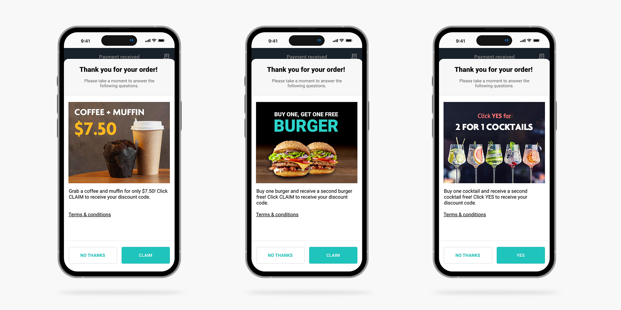 You’ve created some discounts and now you need to get the word out. MondoMenu can help you do just that. Present offers to customers immediately after they place an order. Offers can be linked to any discount you create and customers will receive their discount code via SMS to use on their next order.