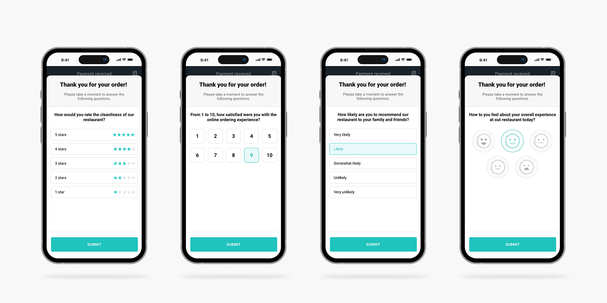 Find out what your customers really think. Present a survey question after they complete their order. There are a range of different survey types you can create such as a star rating, NPS or multi-select question.