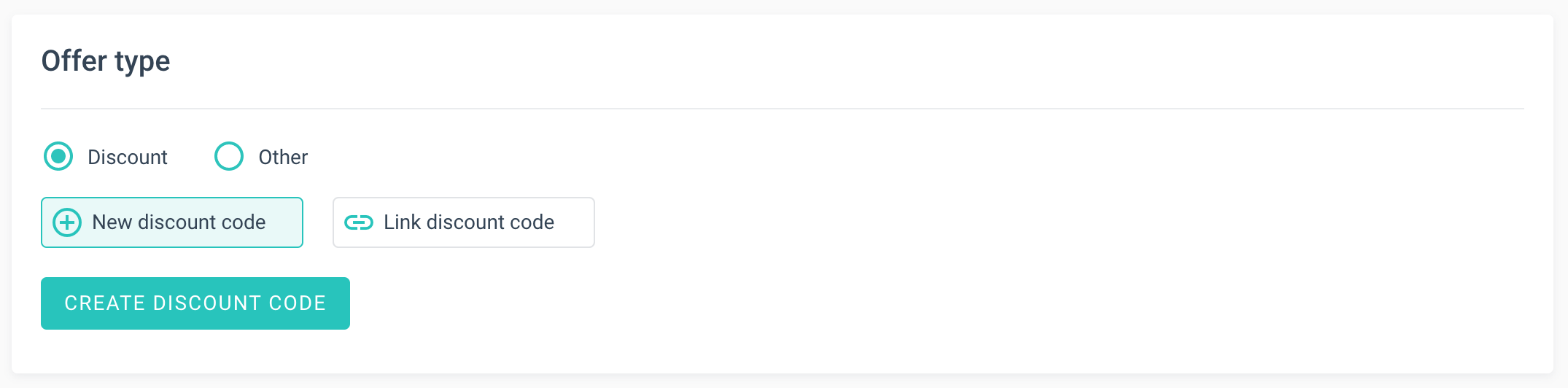Selecting New discount code will take you to the discounts page where you will need to setup a new discount. See our Discounts article for more information.