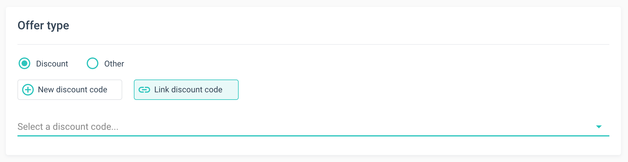If you have already created a discount code, click Link discount code and select it from the dropdown list.
