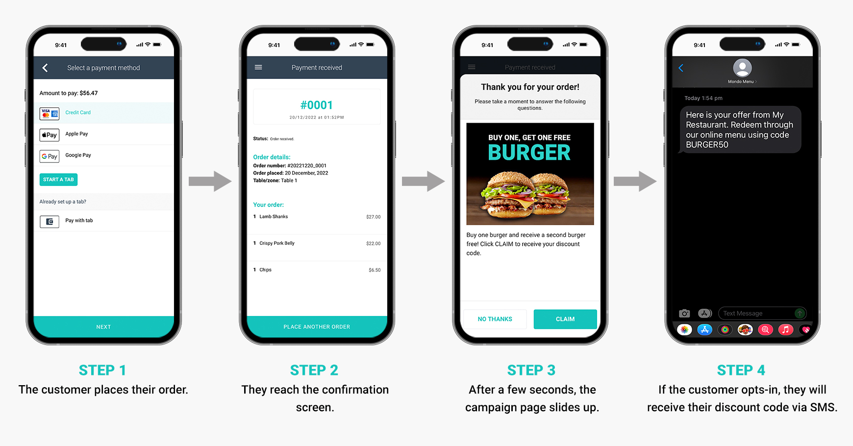 Send customers an SMS message when they opt-into a campaign. This SMS should include their discount code and instructions on how to redeem it. Please try to keep this message under 120 characters to avoid increasing the cost to two SMS messages.